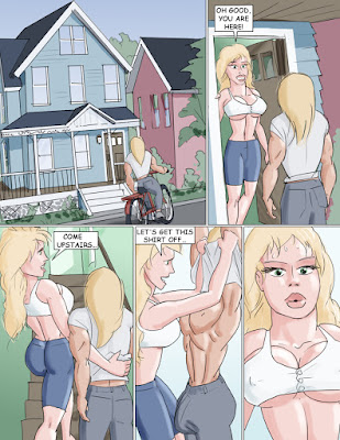 On his first day at the school Richard was enticed into the girl's locker room by Vivian the head cheerleader, and she was the most beautiful woman he had ever seen. She was awestruck by the enormous thick muscles on his young bulging body. He was embarassed to death that he could not stop his monsterous cock from growing hard and bursting his shorts. She was shocked by this, and she took the monster thick shaft in her hands and proceeded to lick and bite and kiss it, and to worship it. Other girls wandered in, and were mesmerised by the sight, and collapsed, transfixed and melting with lust. He was a bit nervous, having never been with anybody before, his muscles shook and swelled with tension, his shirt splitting apart over their growing mass. With little experience, he only lasted 90 minutes before he exploded in front of Vivian's face, and fourty times he sprayed onto the ceiling. He got even harder and larger, and he took Vivian, tore her clothes apart, and proceeded to fuck her brains out for an hour and filled her with just as much cum as he had put on the walls. After many hours more he had increased the total number of girls he had fucked in his life to five.